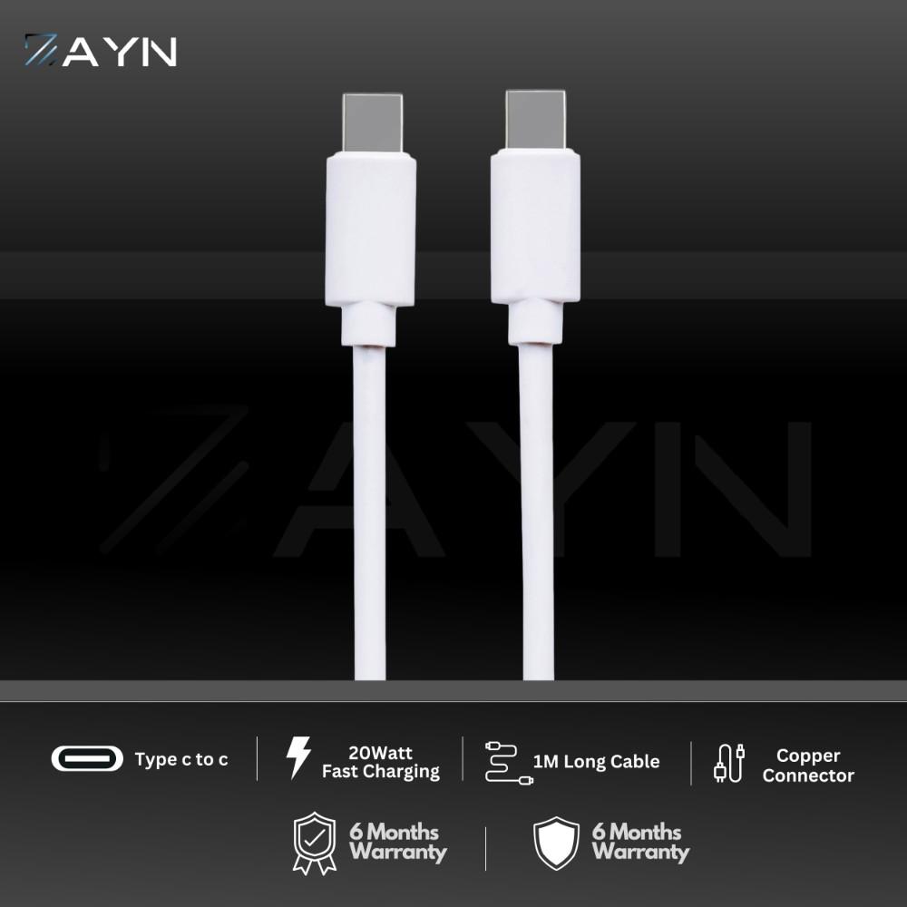 20 Watt & 4A C to C Cable with Aluminium Shield, 10K Pass, PD Charging Support, Bare Copper Used, Long-life Salt Spray Tested Connector. Suited with cables for TYP C, C to C, and Type C to Lightning charging and connectivity.